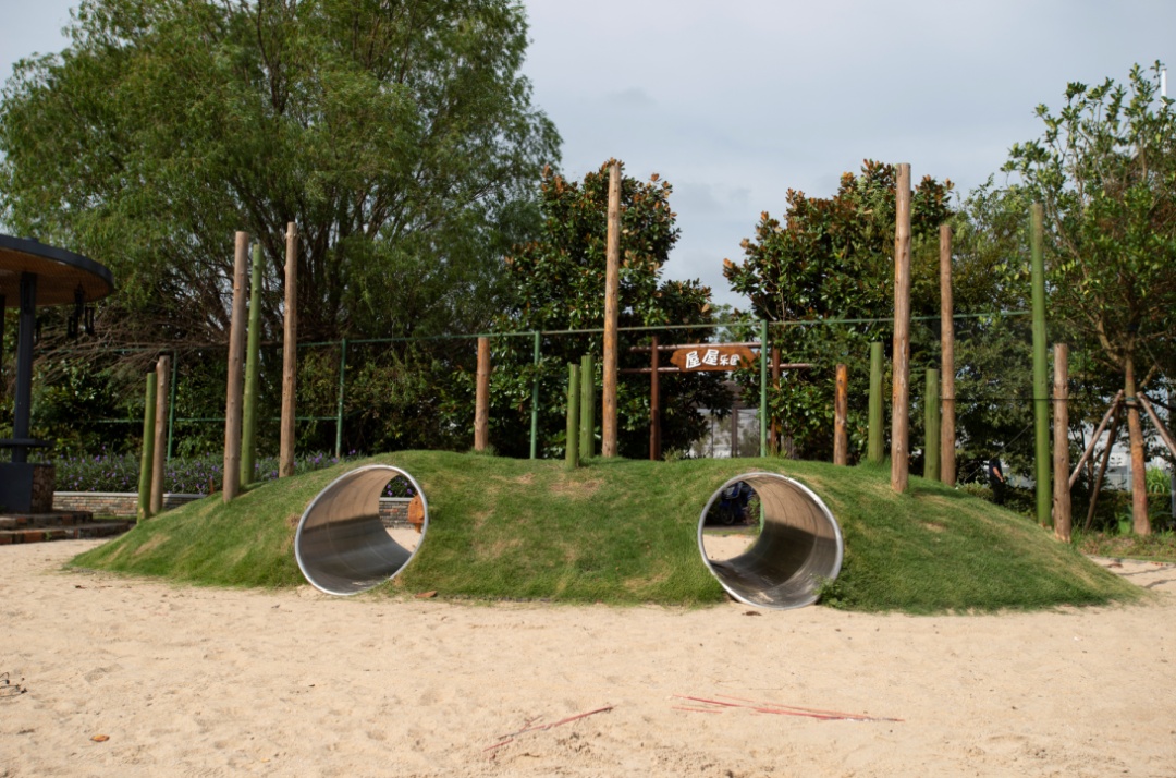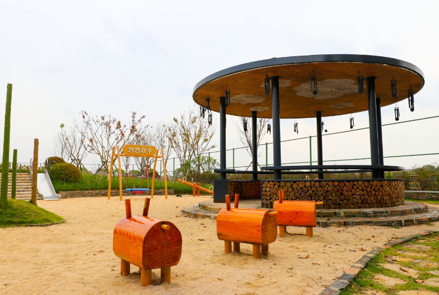 走去咖啡吧的路上,会经过一处儿童乐园,有山洞、秋千、滑梯……各种各样的儿童娱乐设施,乐园四周,是大片的农田、遍地的野花,还有河里的鱼儿、树上的鸟儿,让孩子们真正在大自然中嬉戏,体味乡村生活的海阔天空。
