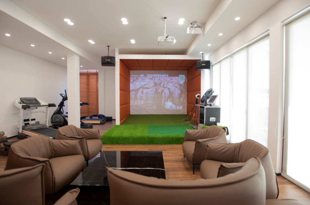 这里是可同时容纳8-10人的休闲娱乐中心,休闲中心配备最先进的VR高尔夫娱乐项目、国际一线品牌的音影设备和头等舱座椅、健身锻炼器材,游客还可根据需求点播经典影视作品,通过高级的沉浸式的音影体验给游客带来不一样的视听效果,可以满足不同客户的休闲以及团建需求。