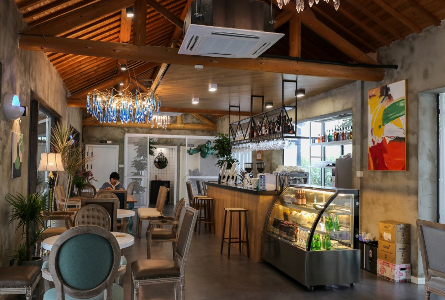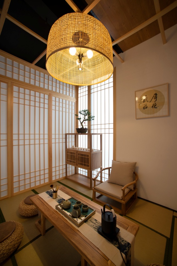一茶一世界,一味一人生。在茶一茶室中,大家可以通过沏茶、赏茶、饮茶结交新友、故友长谈,抑或静身一人,独酌一杯,养神安心,去除杂念,洗涤繁杂生活与工作带来的浮躁情绪。不限于此,均瀛乡村小镇总是带给人意想不到的惊喜,在茶室的一侧还配备了烟斗雪茄体验室。东西方文化的和谐交融,传统与创新在茶室内碰撞和融合,慢享生活,使茶一茶室成为综合体内最具体验感的场所。民宿办理入住后,在掩映的绿意中,在火红的晚霞下,游客可以踱步至此,小酌老酒之外,或去茶室体验下烟斗雪茄,好不惬意。