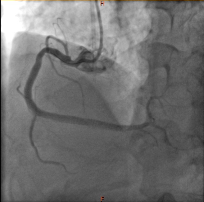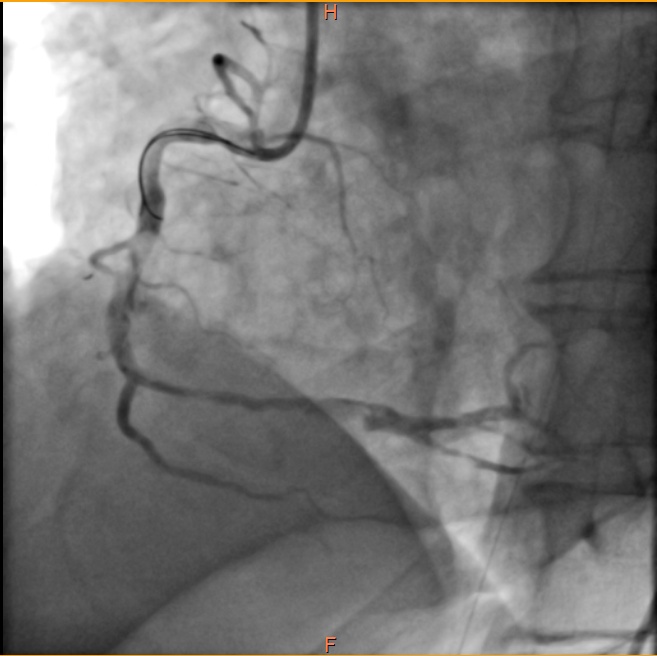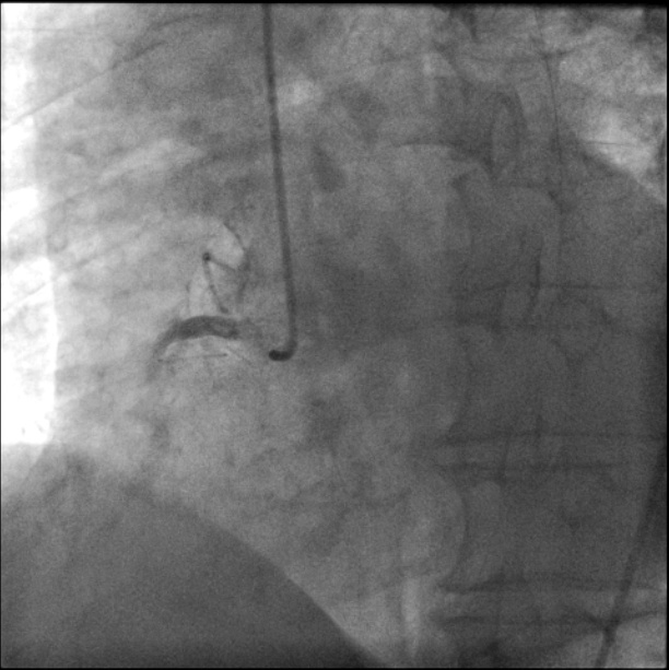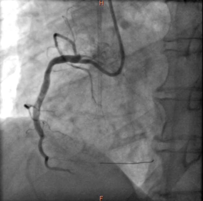 虽然如此,病人右冠状动脉的危险情况仍未完全解除,如同达摩克利斯之剑悬在头顶,不知未来哪天还会再发心肌梗死。经过心内科医师与患者家属的积极沟通解释,几日后再次送至导管室,于右冠状动脉病变处植入了心脏支架,保障了血流通畅。