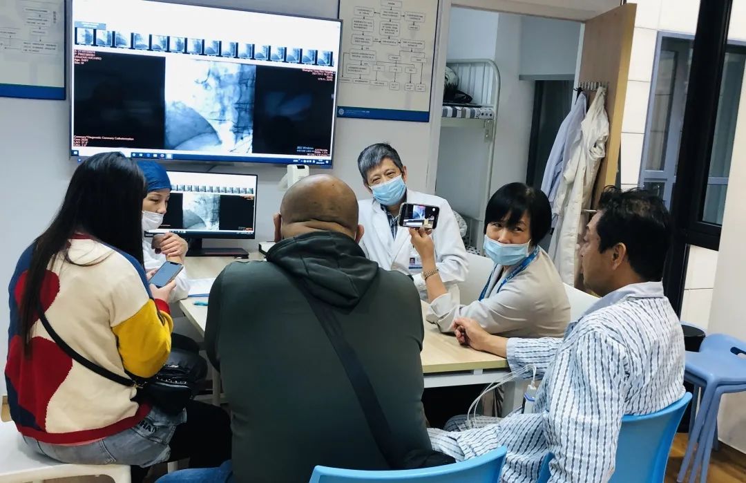 (心内科医师、翻译与患者及家属进行病情沟通)