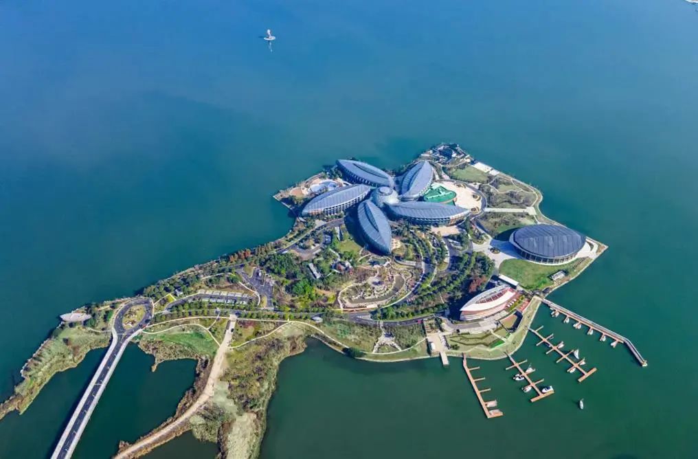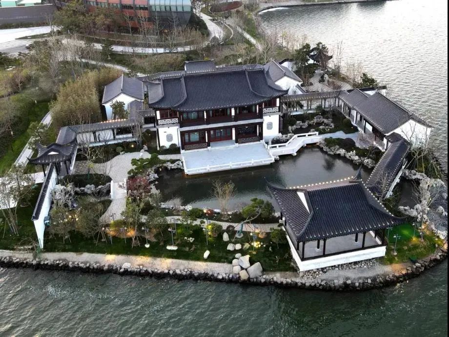 滴水湖南岛占地14万平方米,四面临水,岛上拥有10万平方米的绿地融合假山瀑布、水榭楼台等苏式园林风格景观,演绎着别样的古典与现代的融合之美。