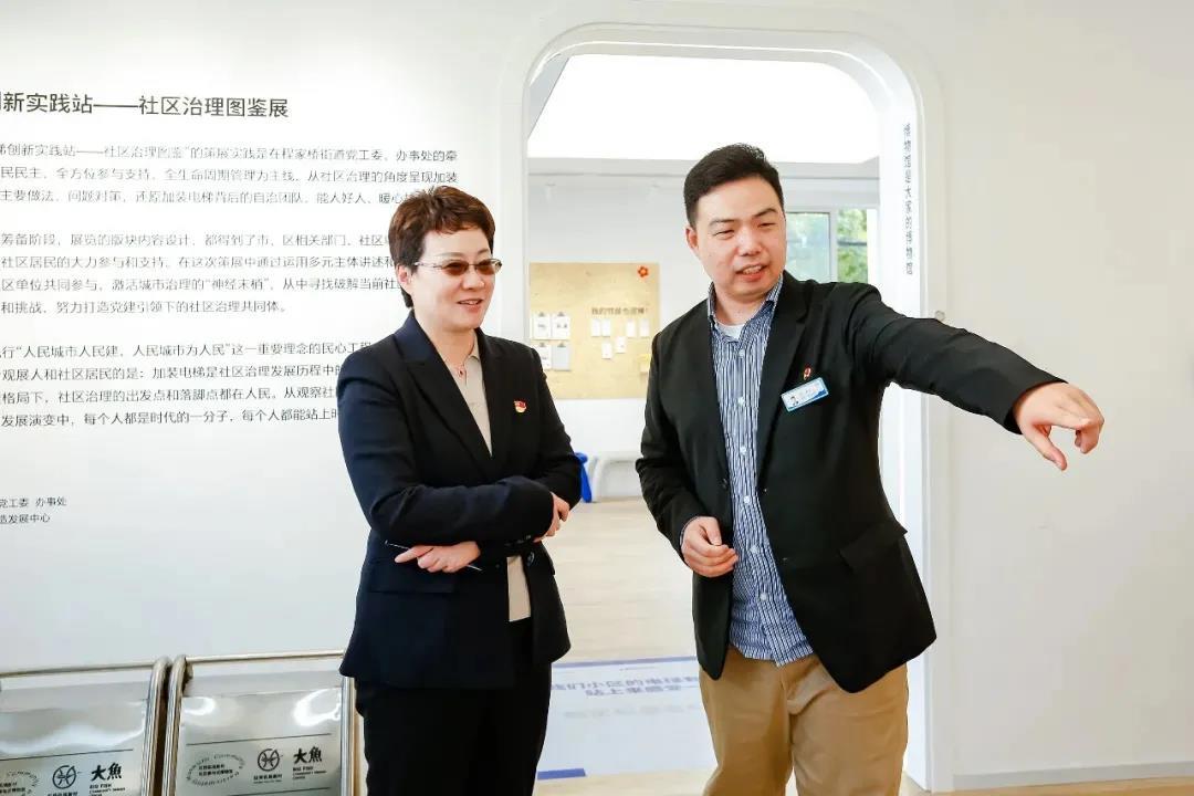 “初心讲堂”伊始,白雪茹一行实地参观了虹桥机场新村内社区参与式博物馆、“智慧小屋”、社区治理图鉴等程家桥街道社区治理成果展。