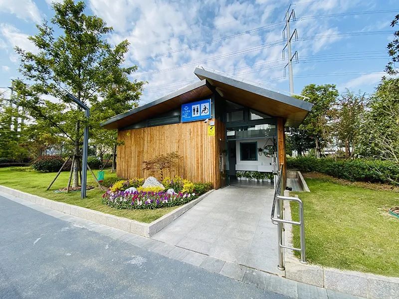 该厕所位于长兴岛郊野公园游客中心东侧,占地面积166㎡。厕所建筑主体创新性选用“节能型”光伏瓦结构,通风系统、电力系统等设施均采用光能发电,室内则选用绿色植物进行装饰。以AAA级旅游厕所标准建设运营,在管理维护方面,公司制定并严格落实《厕所管理规范制度》;在服务保障方面,配备有洗手液、消毒液、干手机等设施,针对母婴、残障人士等特殊群体提供相应的保障服务;同时,充分利用游客中心电子显示屏,定期进行 “文明如厕”宣传推广,有效发挥景区的社会职能,助力文明社会发展。