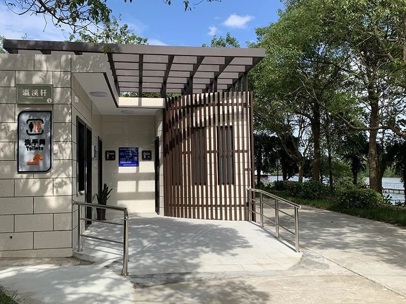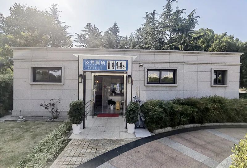 该公厕环境优雅、内部设施高档有质感,结合花镜、立体绿化、墙绘、挂画等艺术形式,既营造了公园特色玉兰文化又体现了现代时尚感,公厕外观、色彩、造型与公园环境相协调。内设无障碍设施及残疾人专用位,备有洗漱设施、挂衣钩、卫生纸、皂液、面镜等,相应卫生材料一应俱全。