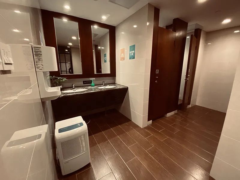 步入公厕大厅,各种智能化元素随处可见,比如洗手区带有触摸式按键,具有除雾和照明功能的镜子,送排风、空调、香氛于一体的新风系统等。公厕打造了“爱心妈咪小屋”,设置了儿童专用的小便池和坐便器,安装了婴儿护理台、幼儿座椅。另外,休息区域设有沙发,在提供免费厕纸的基础上,设置了免费人脸识别取纸和品牌纸巾售卖机,满足个性化需求。公厕内设有便民箱(母婴)、便民伞、雨伞存放处、冷热饮水器,洗手台边各摆放杀菌洗手液、护手霜和精油香氛,充分体现出了细微之处的贴心服务和“为民服务”的宗旨理念。