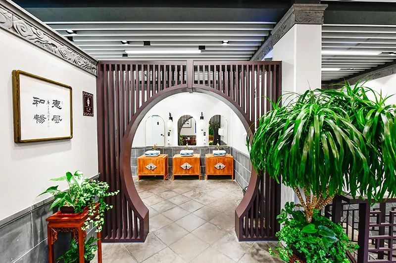 该公厕内部设计上采用古色古香的风格,从原来的一层改建成现在的二层设置,里面设置了母婴室、儿童卫生间、第三卫生间等。此外,公厕还配置了智能引导系统,新风系统、智能除臭装置及背景音乐播放系统,增设服务评价系统等,实现了云台控制,内部采光实行内置式节能灯带感应光源。
