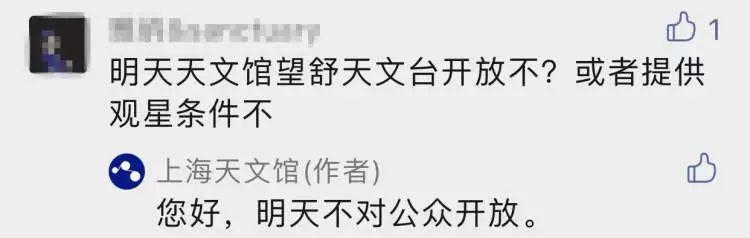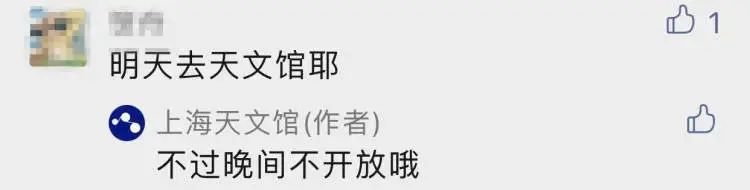 还有些“月迷”按捺不住激动心情,昨天在评论区留言,要冲到天文馆去看月亮!上海天文馆也及时提醒,上海天文馆晚间不开放,望舒天文台今天也不对公众开放哦↓↓
