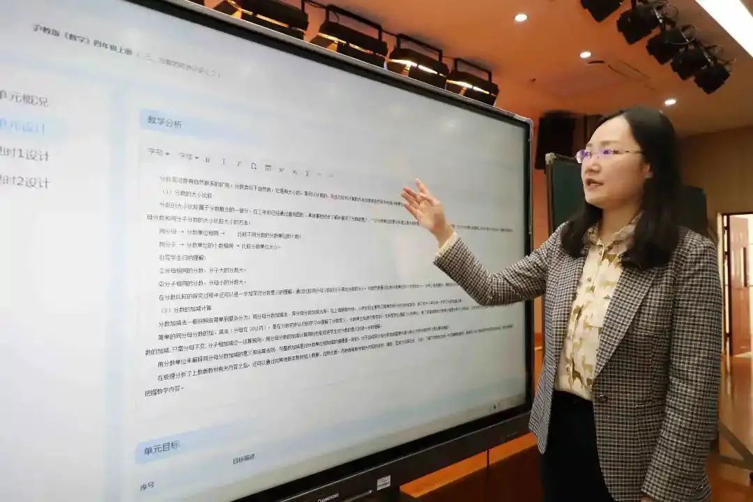 平凉路三小依托“备课助手”信息化手段,为教师备课提供便利和丰富资源。图为学校数学教导徐音老师正在介绍演示“备课助手”