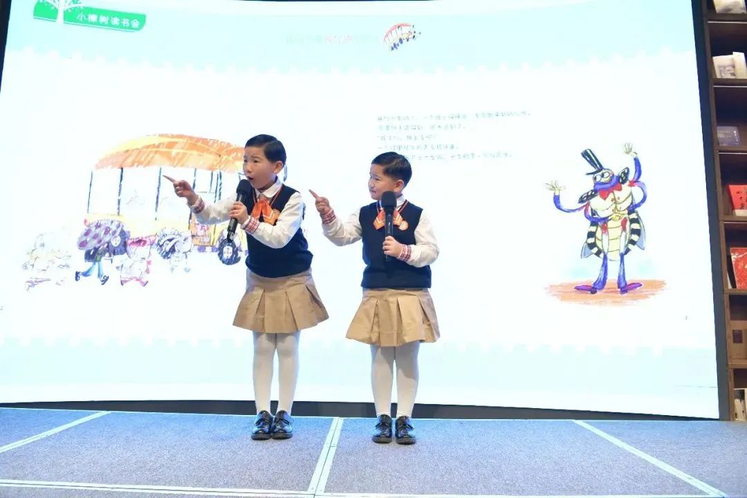 侯泓豆、侯妙歌姐妹俩用清亮悦耳的童声、惟妙惟肖的表情与动作,表演了故事《我们不要放屁虫开巴士》,引得现场一片赞叹与喝彩。