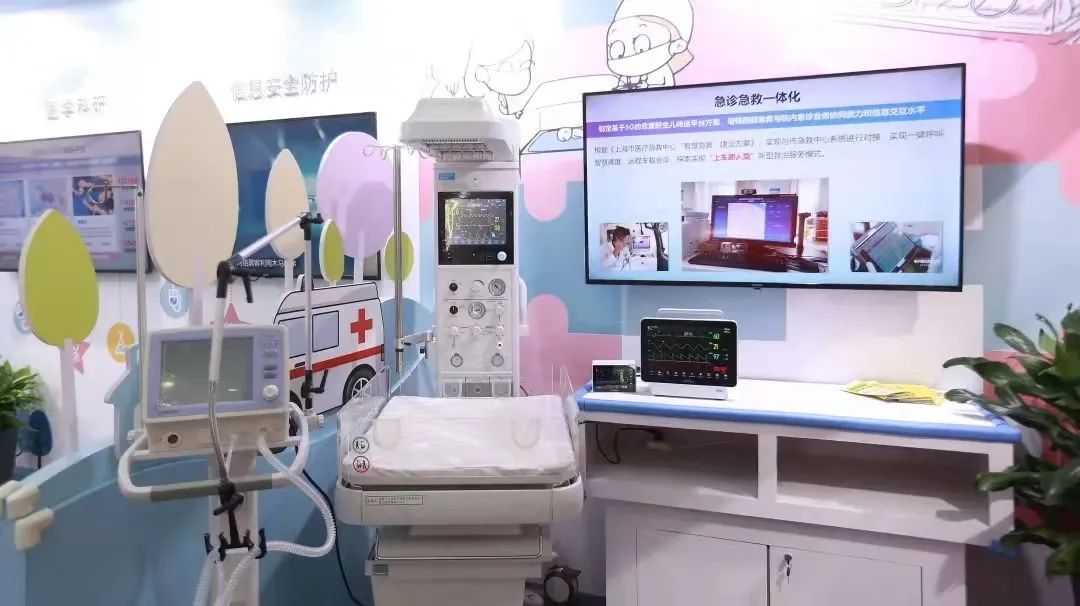 5G技术赋能智慧急救,通过与市急救中心进行对接,实现一键呼叫、智慧调度。在智慧急救体验区,参观者可以看到救护人员是如何通过车载会诊设备可远程获得专家指导,从而争取急症抢救的宝贵时间。“患儿未到,信息先到”,院前急救信息同步院内,辅助急诊医护人员做好相应准备,实现患儿“上车即入院”的急救新模式,从而提高救治成功率。