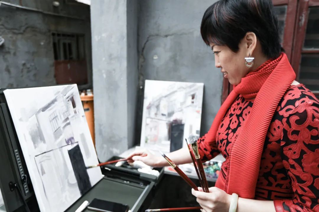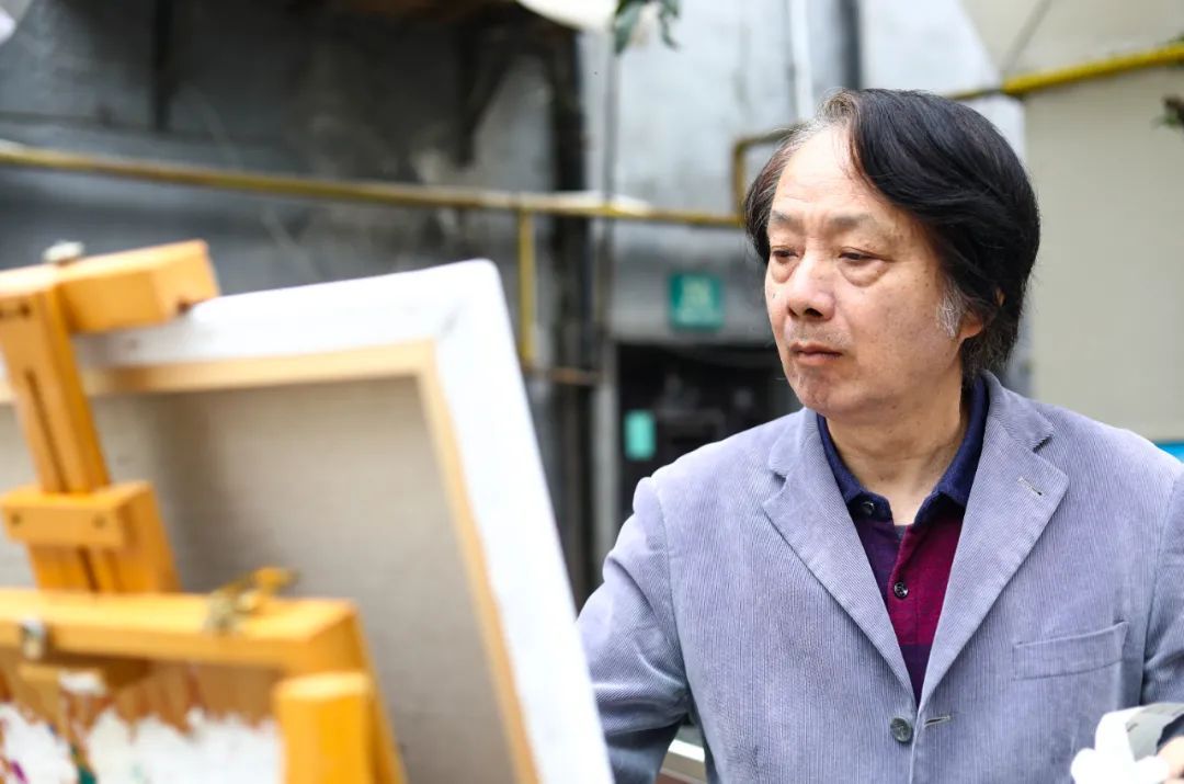 ▲艺术顾问、江苏省油画学会主席陈世宁于世界会客厅写生