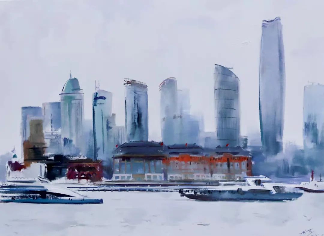 “这是一次非常有意义的体验,记得八十年代中期在华东师范大学读书期间,每年都要到北外滩参观沿河两岸的历史建筑,每次观看都带来不一样的惊喜和体验。三十几年后,又有机会用我的画笔来解读眼前的百年历史建筑,无论从建筑美学,还是它的造型设计,无论是材料运用,还是匠人的技艺,历经沧桑巨变,现在仍然让我回味无穷。”