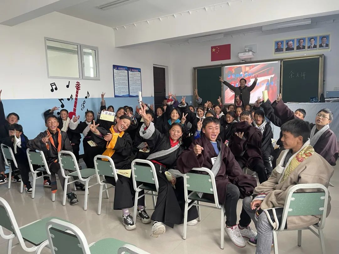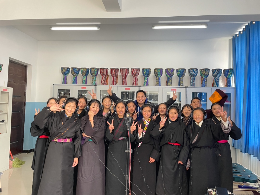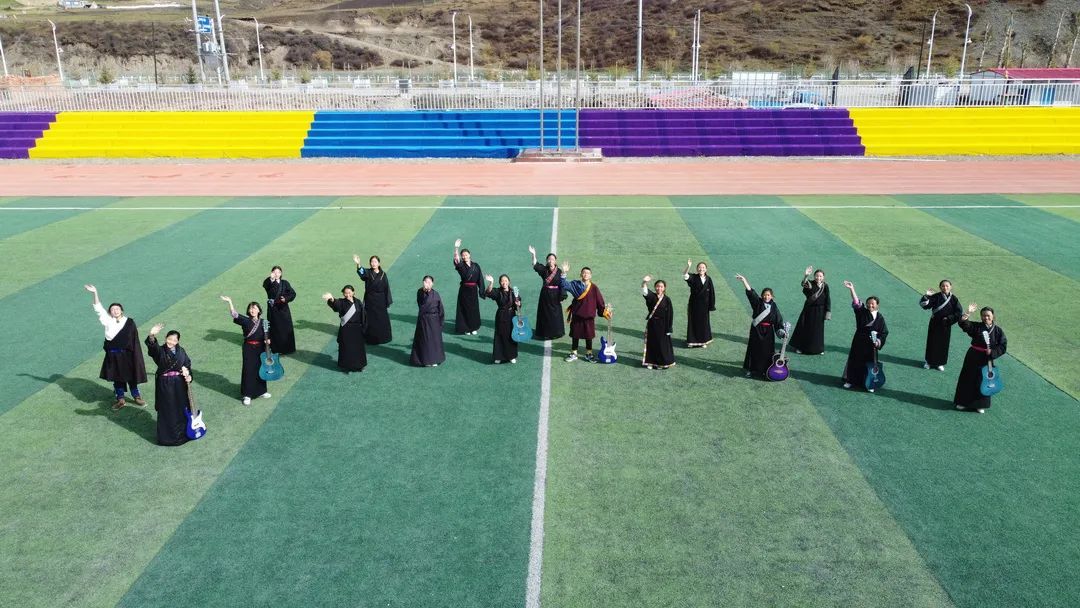 在高原支教期间,赵老师不仅教会这些音乐零基础的学生识谱和演唱,且创作了民中历史上第一首汉语校歌《神山的花园》。这次演出开始前,“新闻晨报·周到上海”与嘉定区融媒体中心共同发起“童”唱一首歌征集行动,邀请上海孩子学唱这首歌。