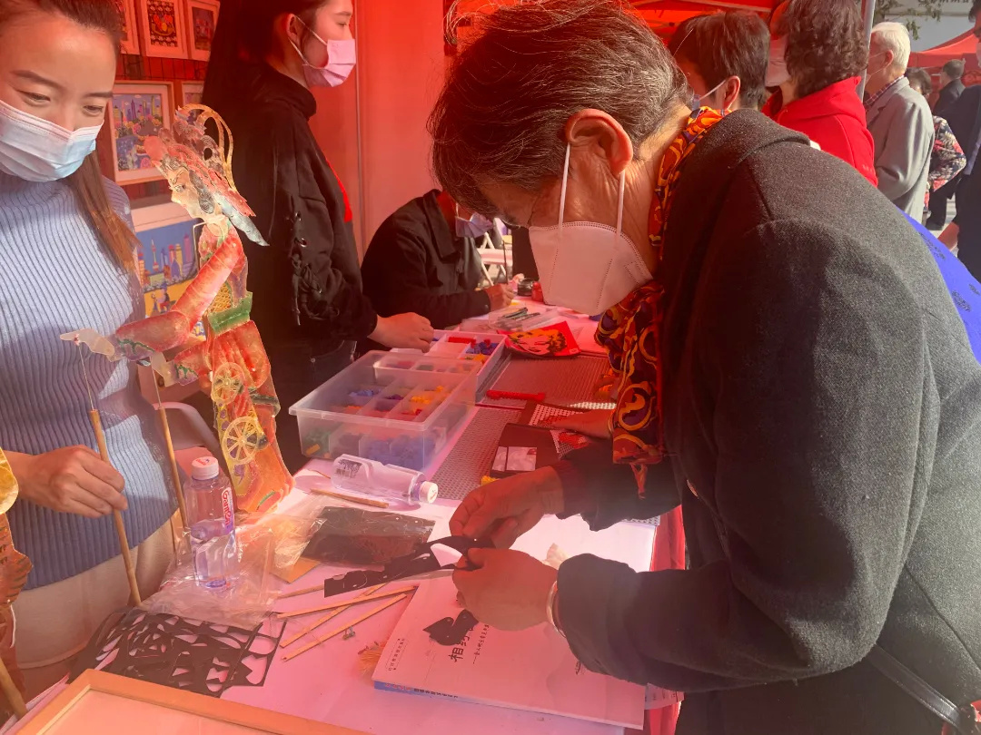 活动现场,各个展区前都排起了长队。皮影、缠花、蛋壳彩雕等特色项目都深受市民欢迎,还有不少老年人在工作人员的指导下体验起了VR,感受沉浸式的快乐。而作为近期热点,乐高项目更是吸引了不少居民的参与。
