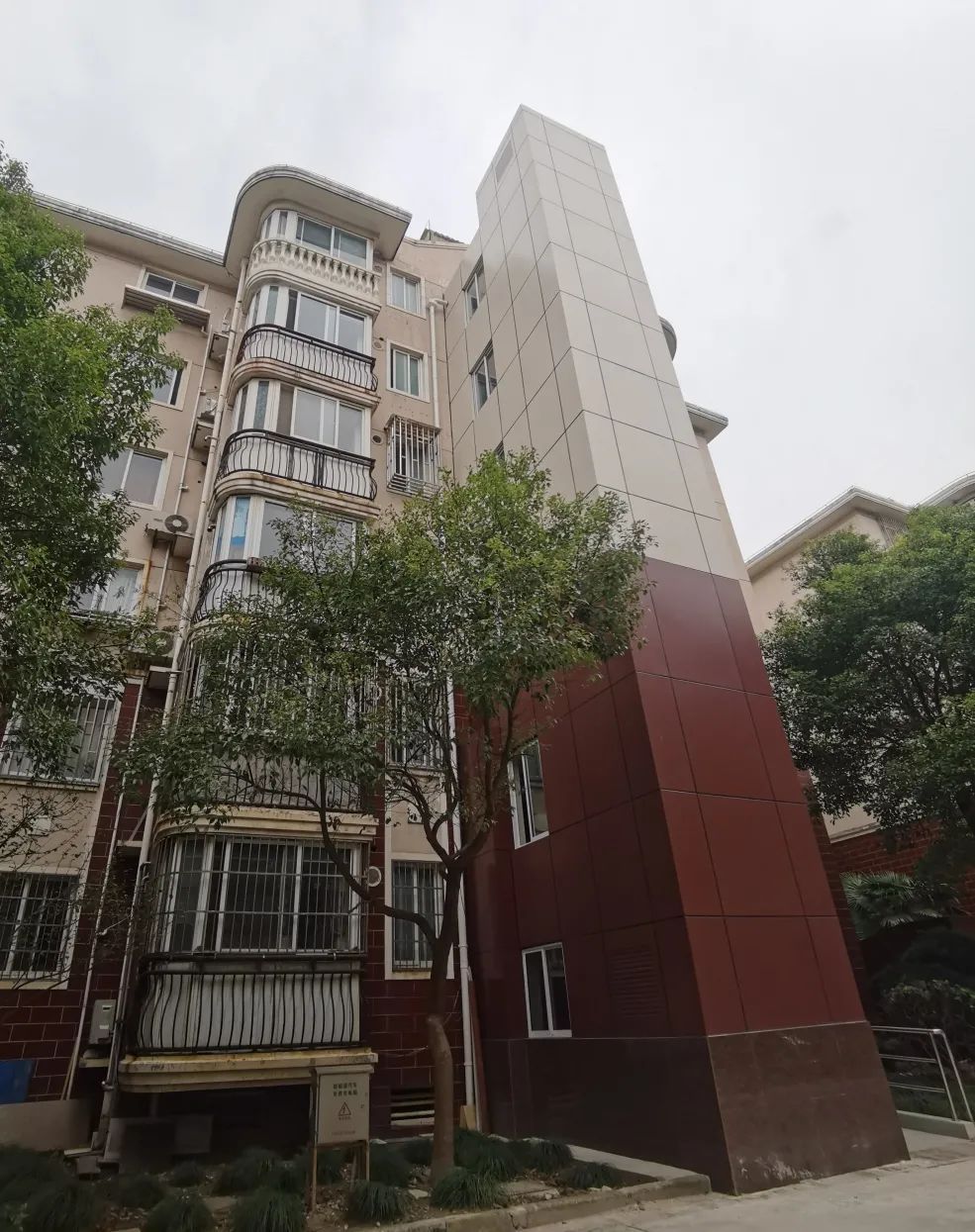 “到了!”若不是张阿姨及时提醒,记者还未发现,绿意绵延的主干道旁耸立着一幢崭新的外置电梯。红底白身的外墙与原来的建筑颜色完全融合在一起,清新而不突兀。