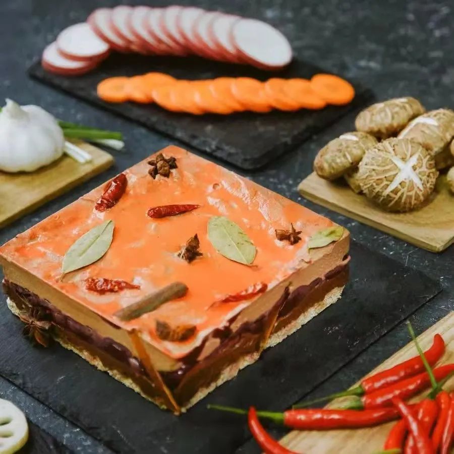 就拿甜品的“红油锅底”部分来说,光是配料就涵盖了牛奶巧克力慕斯、柑橘果肉夹心等7种,采用了低糖、低色素的高品质食材制作。