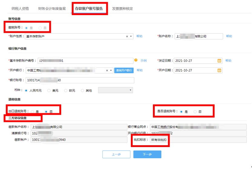 纳税人可选择填报企业已开立的基本存款账户信息,纳税人可选择在新办登记时选择签订三方协议,也可后续自行签订。签订三方协议时,存款账户默认为缴款账户,注意批扣标志为“所有非批扣”,如有修改后续可自行调整。