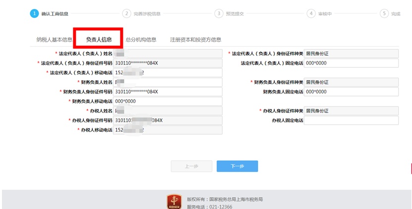 1. 一般企业这个模块涉及四个页签,分别是“纳税人基本信息”、“负责人信息”、“总分机构信息”、“注册资本和投资方信息”,部分字段是市监等部门采集并共享的,无法修改,若与实际不符,纳税人需前往市监部门核实有关情况,标“*”为必填项。