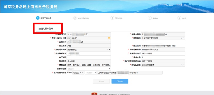 2. 个体工商户仅涉及纳税人基本信息1个页签。
