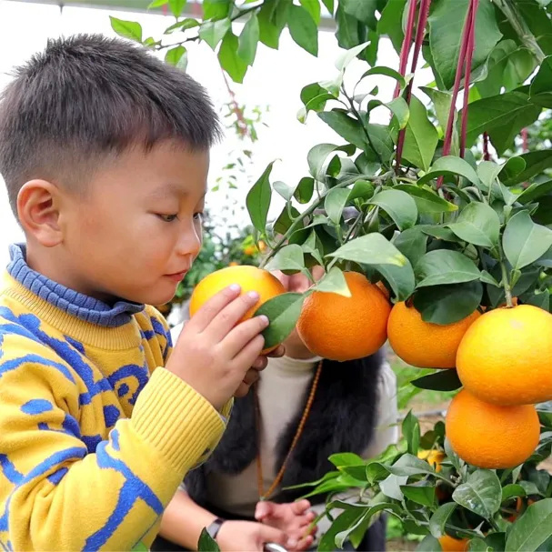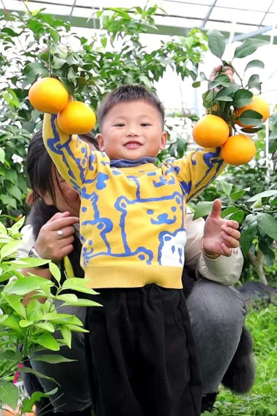 现场正好有妈妈带着孩子前来采摘,小朋友闻一闻味道、掂一掂分量,不一会儿就收获满满。