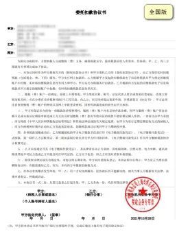 如果选择【回注册地】,会生成全国版本的《委托扣款协议书》,用户可下载后签字加盖公章后前往注册地开户银行办理纸质签约。