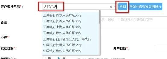 6.按照温馨提示在开户银行名称处输入关键字后按查询搜索并选择。