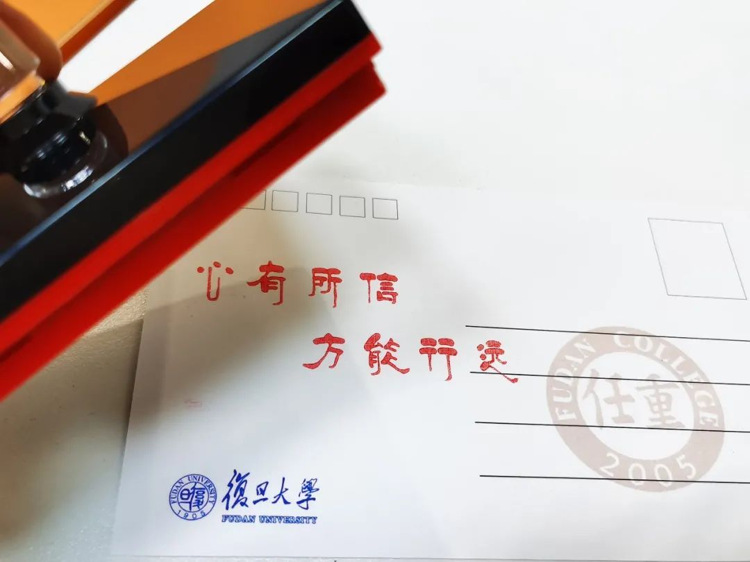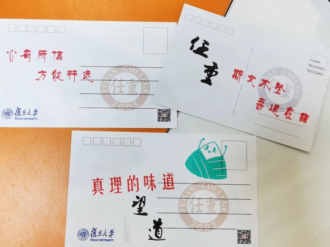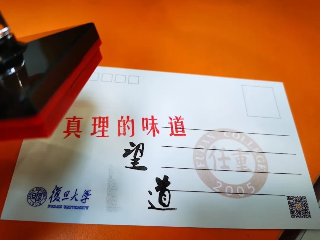 陈望道老校长纪念明信片取材于望老笔名、旧居、墨水红糖的故事等。观众可在演出结束后于出口处直接领取,还可以用画笔与印章进行DIY创作。