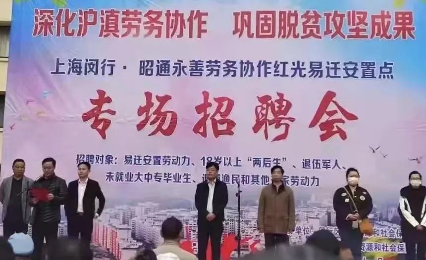 配合线上培训活动,闵行区人社局多措并举,派出工作组于11月16日至20日赴盐津县、永善县易地扶贫搬迁安置区举办就业帮扶专场招聘会。