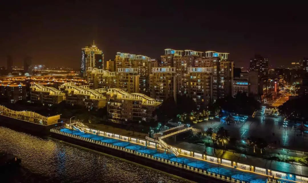 看,蕰藻浜北岸,从开埠广场到吴淞大桥,在景观灯光的点缀下,正展现他独特的历史底蕴及人文特色。
