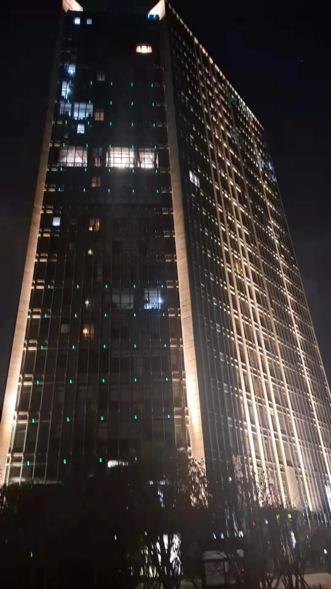 星月国际广场,采用投光灯点亮的形式,突出其建筑高耸挺拔的特点。