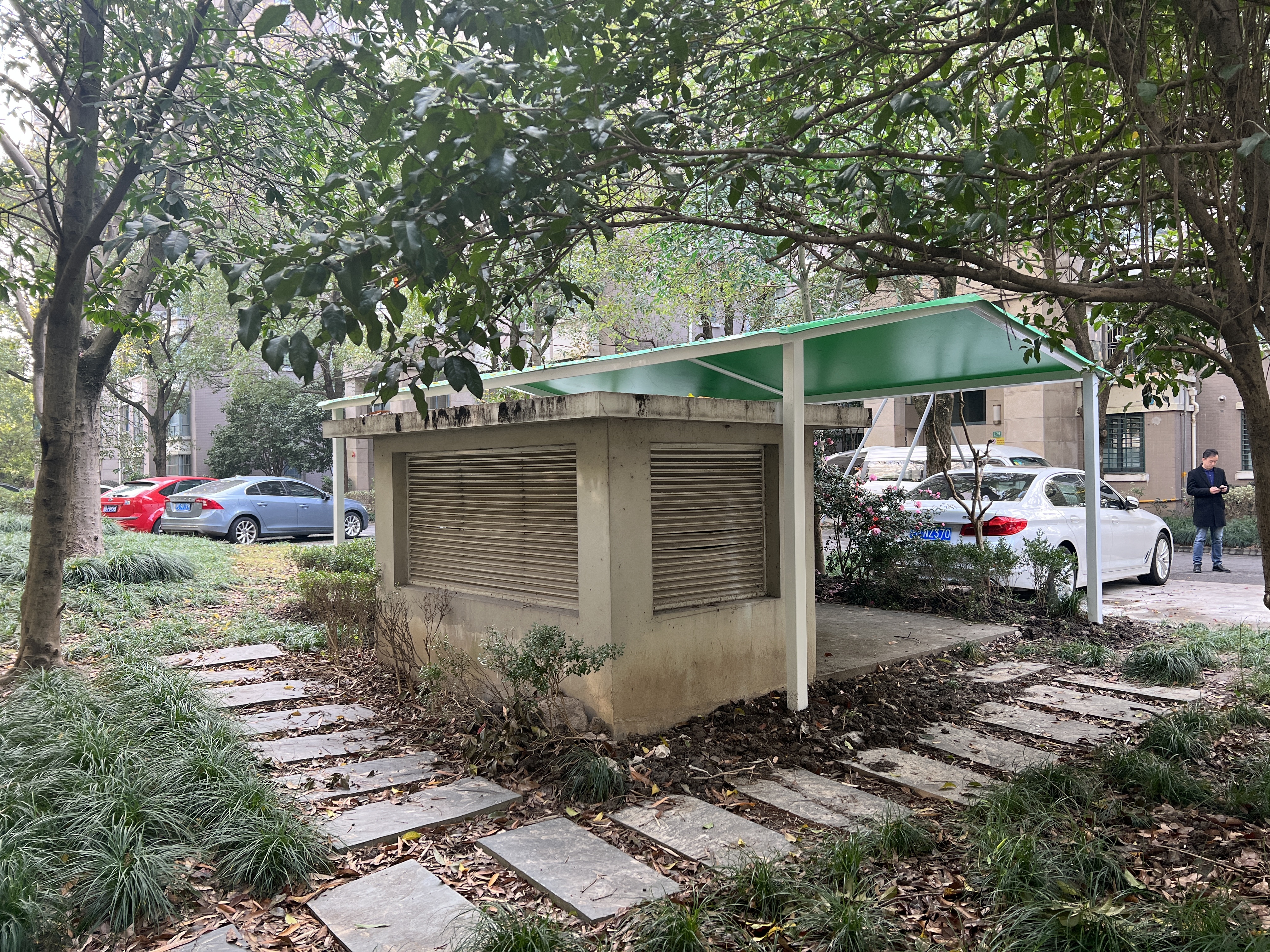 方松街道久阳文华府邸的三处人防出入口近日撑起了三个遮雨棚。与此同时,进出口楼梯也换上了不锈钢扶手。