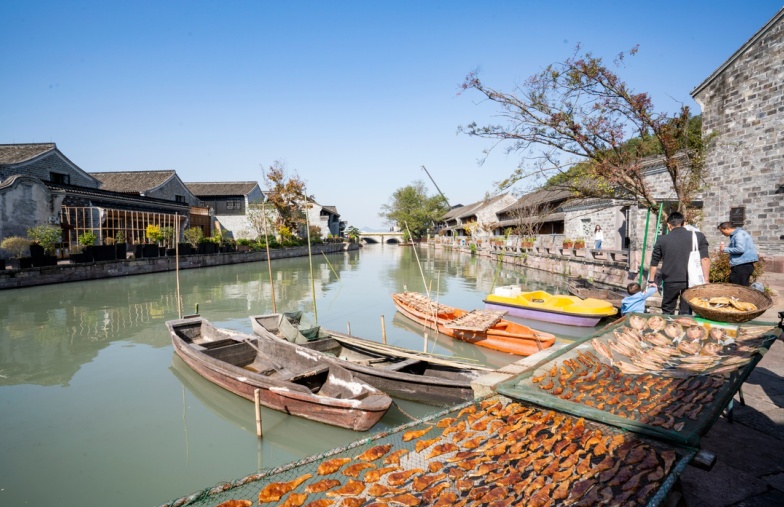 史料记载,王安石治理鄞州时,韩岭老街就已经很热闹,每月初五、初十都有集市。还有,老街是通往象山码头的必经之路,于是鲜咸海货、竹炭、鱼虾螺蚌都在此集散采购。公元1140年,南宋丞相史浩路过此地赋诗一首:“四明山水天下异,东湖景物尤佳致……中有村墟号韩岭,渔歌樵斧声相参。”当年的热闹可见一斑。