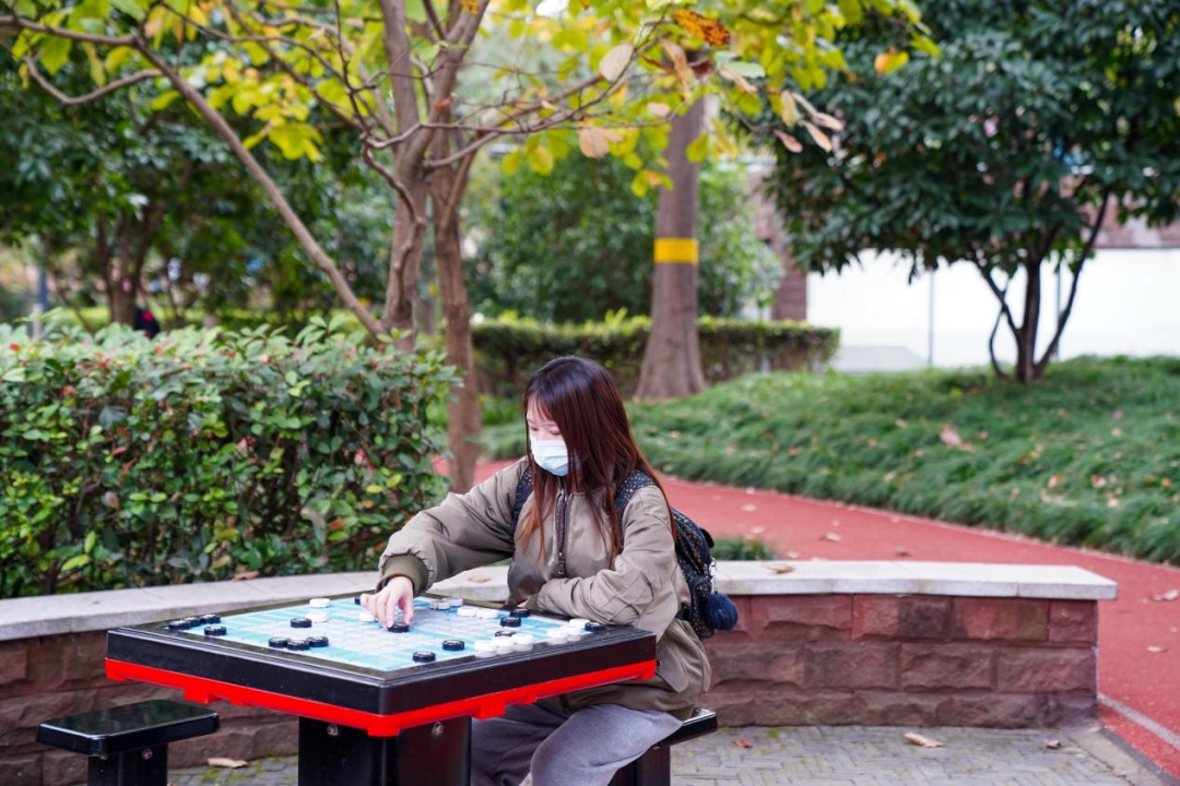 运动累了,还能开启棋艺对决!市民只需用几根手指轻轻提起棋子,就能将棋子在棋盘上横平竖直地灵活移动,爱好下中国象棋与五子棋的市民,去黄山坊市民健身步道健身时,再也不用自带棋具了。