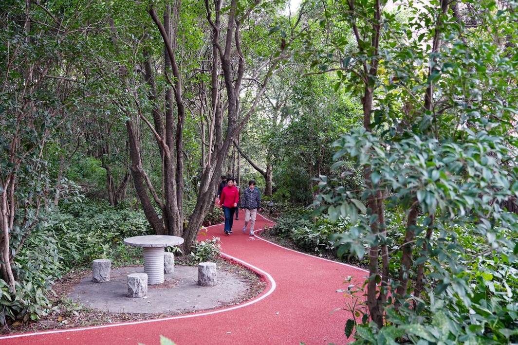 健身步道于2013年在小区中心花园建设完成,今年完成翻修焕发“新颜”,步道轨迹似回形,常有父母或老人带着儿孙辈在周边嬉闹玩耍。傍晚饭后,和家人朋友在绿树边漫步,夜幕降临时,踩着地灯温柔的光影归家。