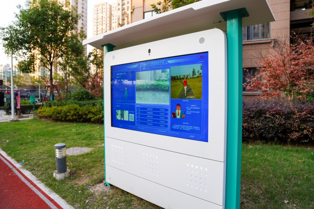 运动过程中,速度、心率等相关数据被实时记录,市民在大屏上可以及时查询浏览。除了这个功能外,还能获取运动排名榜单、健身指南、天气情况等便民信息。