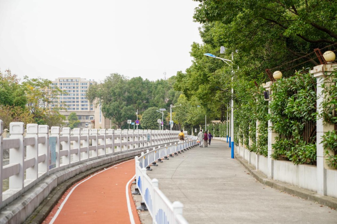 水木年华小区市民健身步道不仅仅是一条适宜跑步的健身步道,更是辖区内一道靓丽风景线。步道长360米,宽2米,位于俞泾浦(广灵四路粤秀路路口)沿岸,两侧整洁的绿植与河水形成秀美风光。