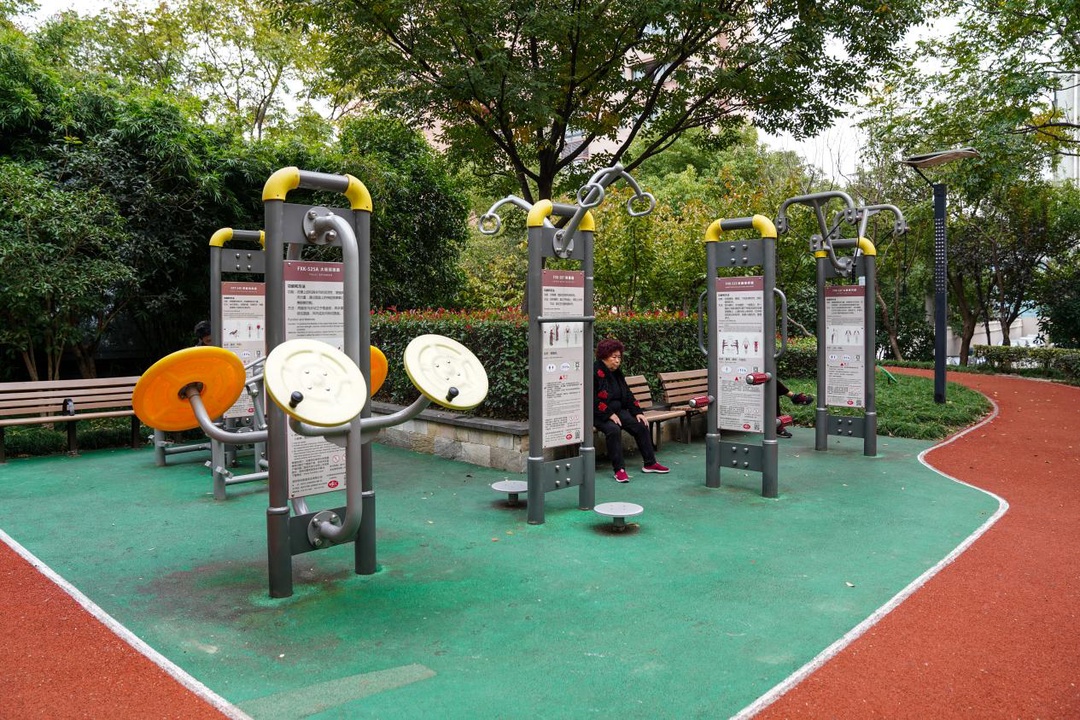 在健身器械区,还设有专业的训练器材,如上肢牵引器、压腿按摩器、太极揉推器等,满足周边居民的健身需求,为老人营造舒适的健身氛围。