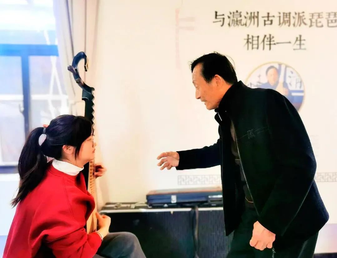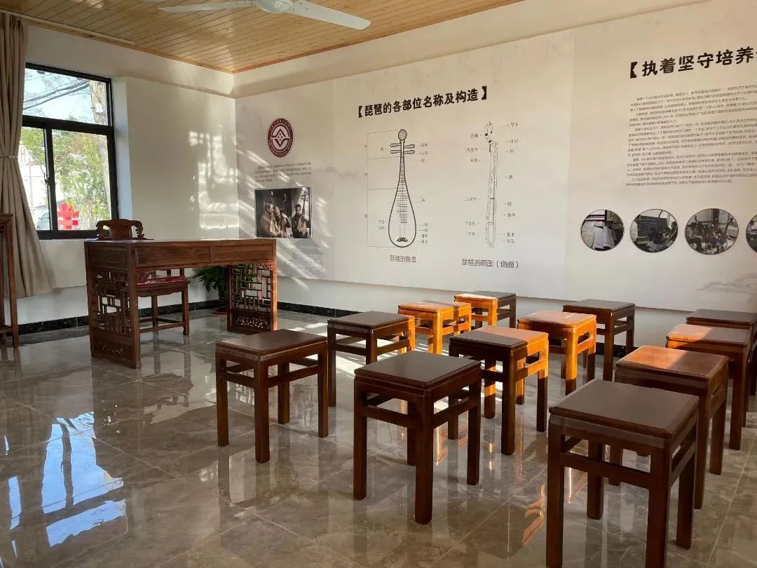 陈忠信是国家非物质文化遗产项目瀛洲古调派琵琶区级传承人,也是天新村人,他执教琵琶多年,从青丝到白发,培养了一批优秀的弟子。镇村两级党组织与陈忠信取得联系,希望他能在天新村开设班级,教授民乐。陈忠信一直以来都想为家乡服务,就欣然答应了。