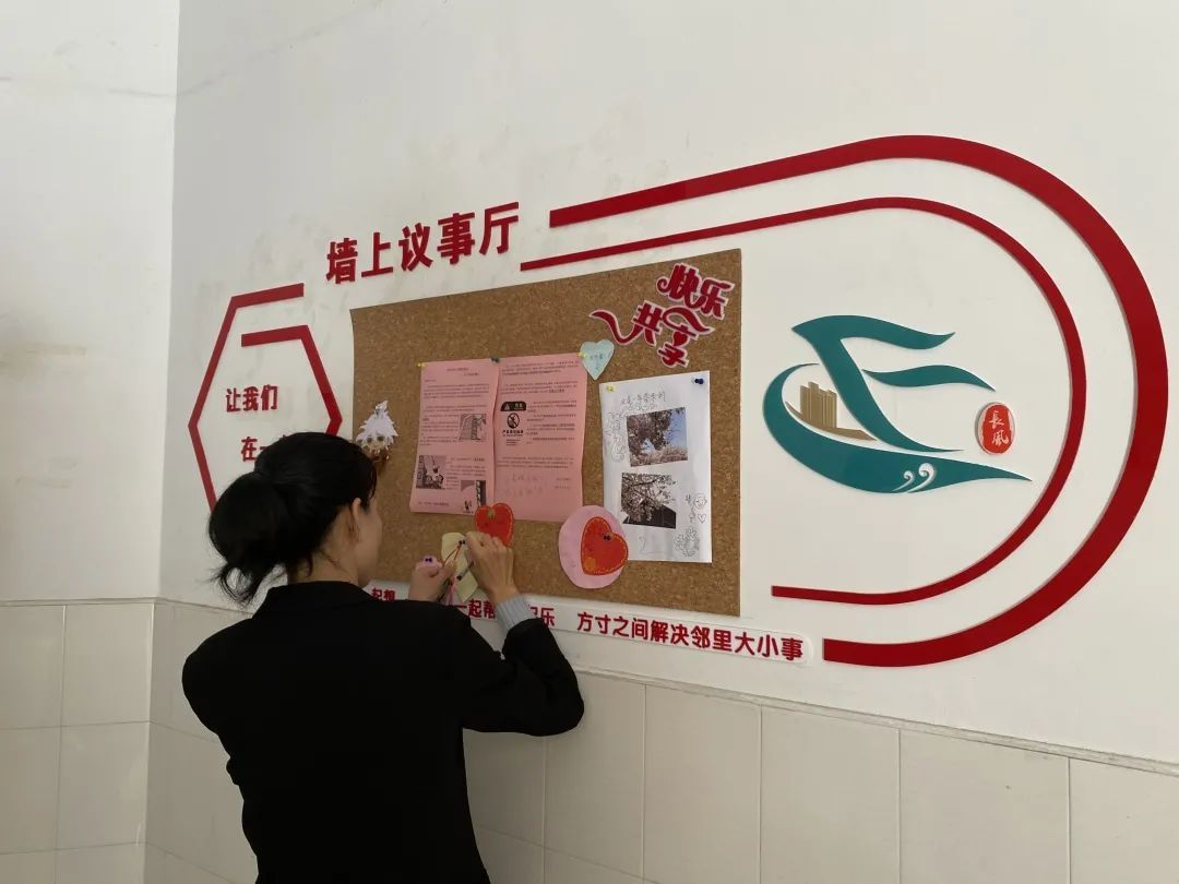 “墙上议事厅”作为楼组自治共治平台,打破了时间和空间的限制,将可留言、可观看、可回复的留言板设置在居民楼道内,将自治平台延伸到社区治理的神经末梢——楼组,既提高了居民的积极性和参与度,也让辖区居民更多地参与居民议事工作。有效拉近了居民之间的距离。