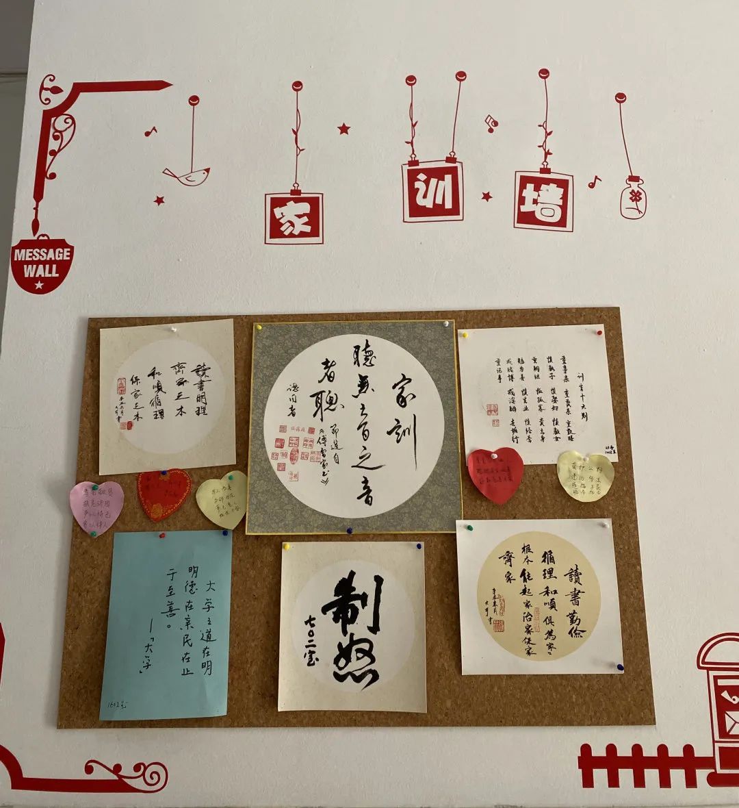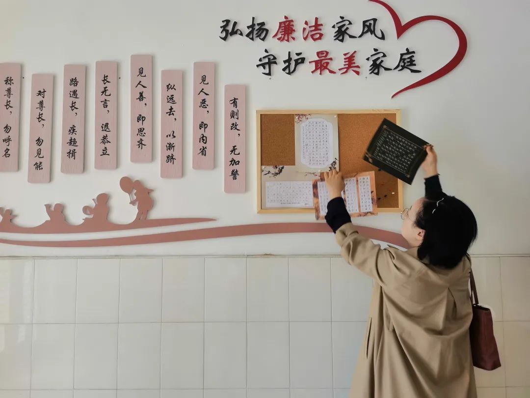 首先是表达心声。“墙上议事厅”设有社区公共栏、家风家训宣传墙、党员风采展示照和居民留言区等模块,居委会会在公告栏或留言板处张贴有关小区的各项通知、公告。例如居民会在留言板上留下“读书明理、志存高远”的家风家训,有效形成了“小楼组大家庭”的氛围。
