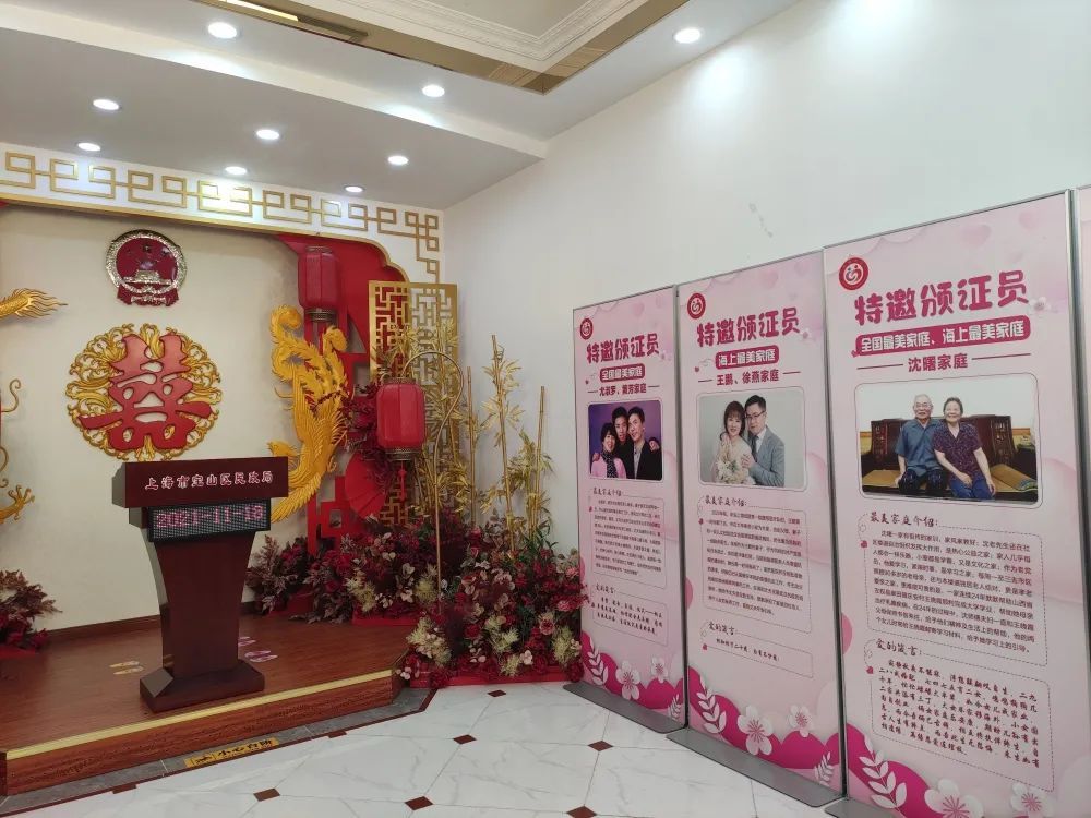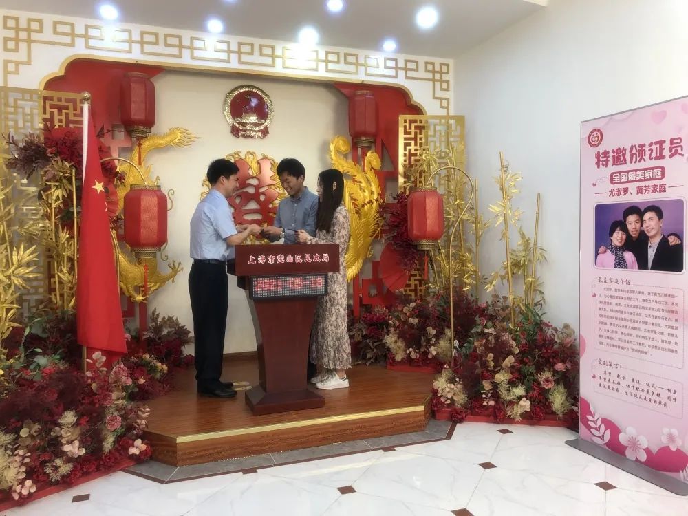 将颁证仪式引入结婚登记流程并实现办证常态化,积极探索个性化颁证模式,聘请全国最美家庭代表为婚姻登记特邀颁证员,定期为新人们颁发结婚证书,将“注重家庭、注重家教、注重家风”的婚姻价值观传递给新人,让文明之花在家庭生根,形成社会主义家庭文明新风尚。