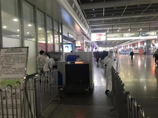铁路虹桥站一共有6个出口,每个出口都有身着防疫服的工作人员(以下简称“大白”)值守,他们主要来自上海铁路局和闵行公安。