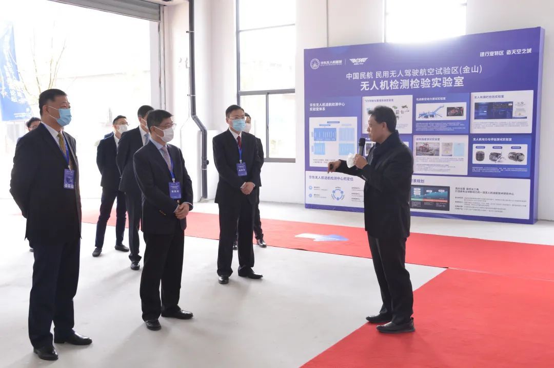 唐伟斌与刘健共同为无人机适航审定检测研究中心揭牌。无人机适航审定检测研究中心启用后,将在中国民航局的指导支持下为行业提供适航符合性方法、技术和标准研究等方面服务,覆盖中大型无人机的气动、结构、飞控、动力等部件及系统检验检测,为无人机研制提供研发支持,为企业进行无人机适航取证提供检验检测服务。其中,基于海岛运行场景的专业飞控检测实验室、动力检测实验室为国内首建。据悉,今年8月,由电动垂起固定翼无人机进行全国海岛首飞后,华东无人机基地又组织完成多架次海岛载货飞行。至此,金山试验区在海岛间低空智能物流运输商业化验证和无人机适航审定技术研究均取得阶段性重大进展,试验区总体建设任务已完成50%。