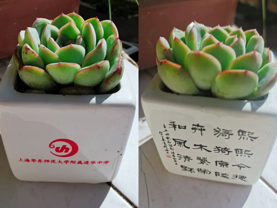 秋天是收获的季节,当天,每位参加活动的嘉宾都收到了一份伴手礼——由师生共同打造的多肉植物盆栽。盆栽精美的花盆设计突出了学校陶艺教育、书法教育的特色,而绿色种植的理念则源自学校“微型生态园”项目的教育培养。
