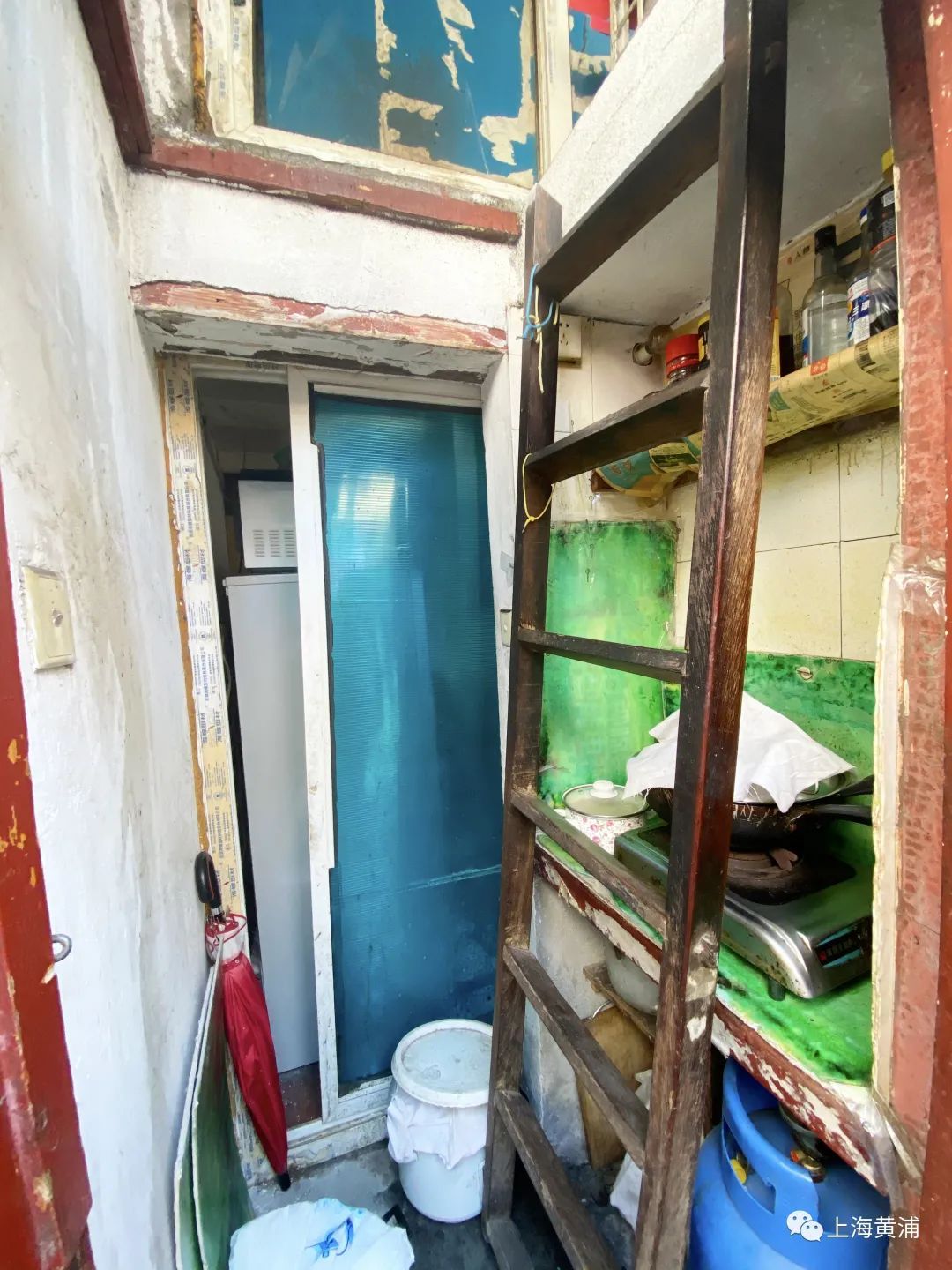 阿婆带着记者走入屋内,除了一张1米5的床和一个小衣橱、一张小饭桌,斑驳老旧的房间里再也容不下其它家当。绕出房门,又是一个仅有一人宽的小空间,里面是烧饭的地方,煤气灶前还放着一个摇摇晃晃的小木梯。“上面的小阁楼,是我儿子们困觉的地方。”任阿婆告诉记者。