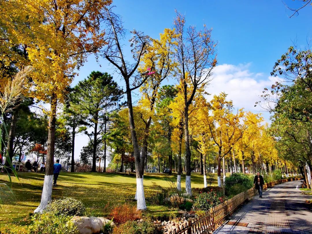 日前,位于美兰湖罗迎路老马河路桥边三棵250岁的古银杏也成了“网红”。这些依河而生的银杏足有4层楼高~