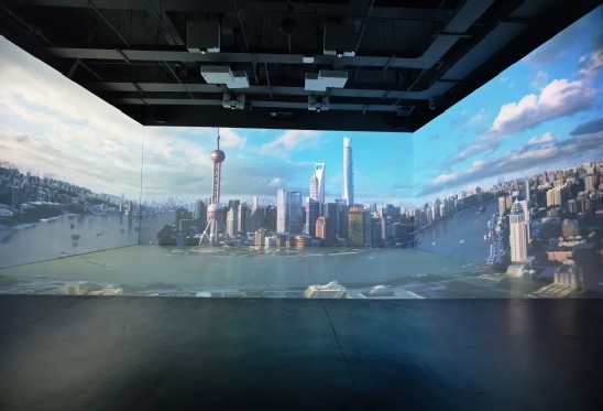 馆内高科技布展随处可见,通过四折幕巨幅投影的形式,介绍“城市智慧消防系统”,体现科技助力消防,智慧守护平安。