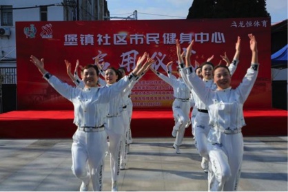 在相关领导为中心启用揭牌后,堡镇社区市民健身中心正式对外开放。同时,堡镇社区首届健康运动会也正式开赛。运动会设置了羽毛球、乒乓球技能培训,体质达标活动等项目。