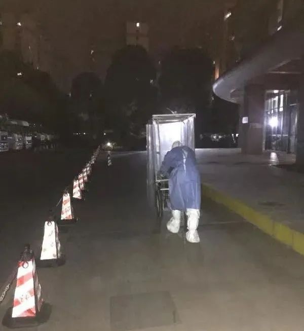 宝宝,妈妈昨天晚上还被一个叔叔深深感动到了,这位叔叔是徐喆,是妈妈在发热门诊的同事。面如突然的封院,他在今晚表现出的从容和担当正是妈妈希望你能具备的品质。封院以后有一位急诊血透患者做完血透需要回发热门诊,这位叔叔就用发热门诊专用轮椅推着这个老爷爷在夜色下艰难的往前走。在他们的正前方正是发热门诊的应急灯,这个应急灯在黑色里特别亮,仿佛像冉冉升起的太阳。今天当我再看这张照片时,内心还是五味杂陈,妈妈仿佛能看到未来的你同样能有如此担当。能像这位叔叔一样挑起肩上的大梁。